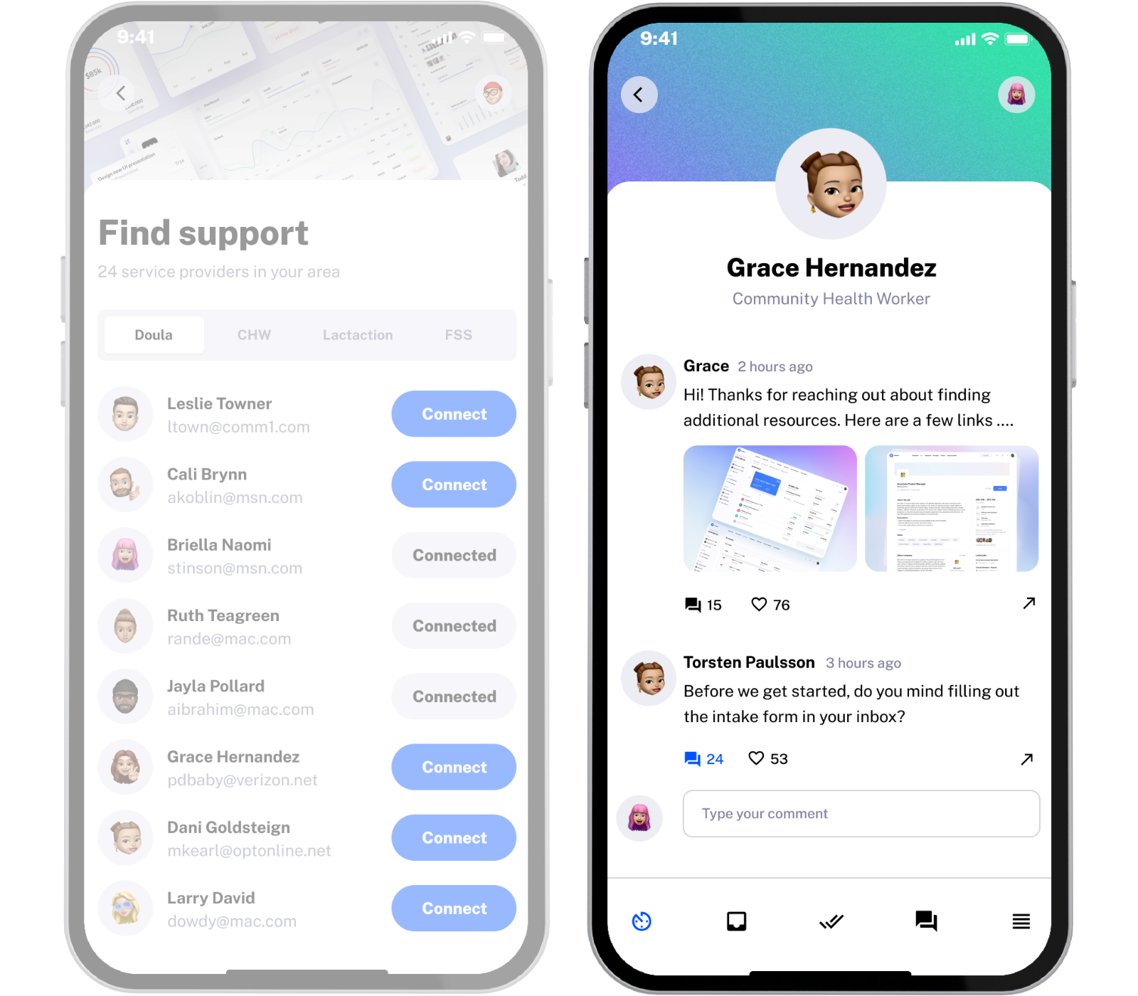 Instantly connect with CHWs, doulas, or IBCLCs—real people, real support.